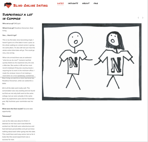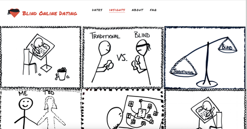 I then built the site, blindonlinedating.com (no longer live), to share my experiences. I created a video and released a date once a week to build a following. Additionally, I provided insights and learnings about the experiment.